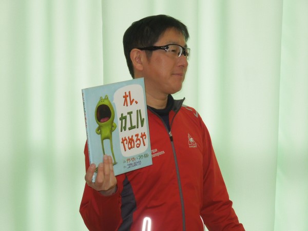 宮岸先生の語りに、みんなニコニコでした。カエルくんは最後にどうなったか、お家で聞いてあげてくださいね。