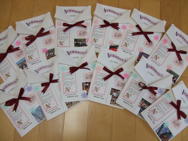 今日の一枚は、6年生に送られた保健室・横江先生から贈られた「卒業おめでとうカード」を紹介して終わりにします。