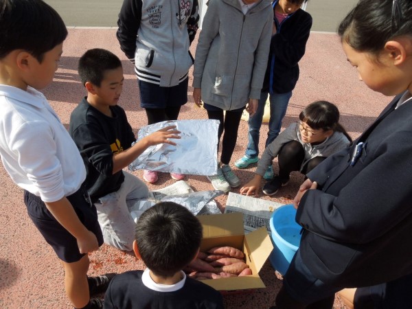 みんな自分のイモを確保して、次はみんなで「ぱっかん」!!