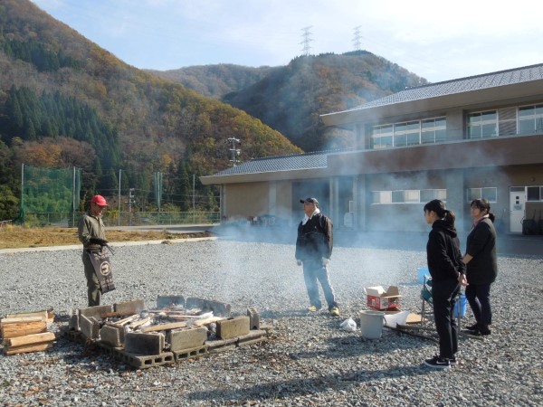 2時間目から焚き出した火は、このころにはすっかりおき火になっています。