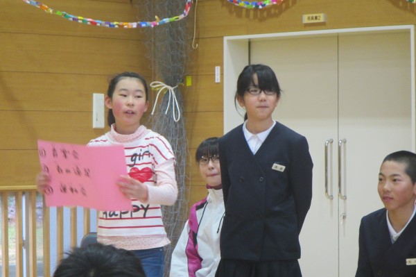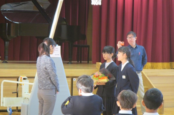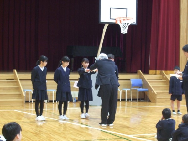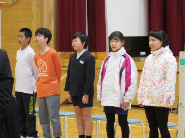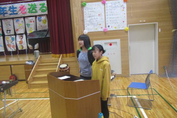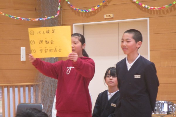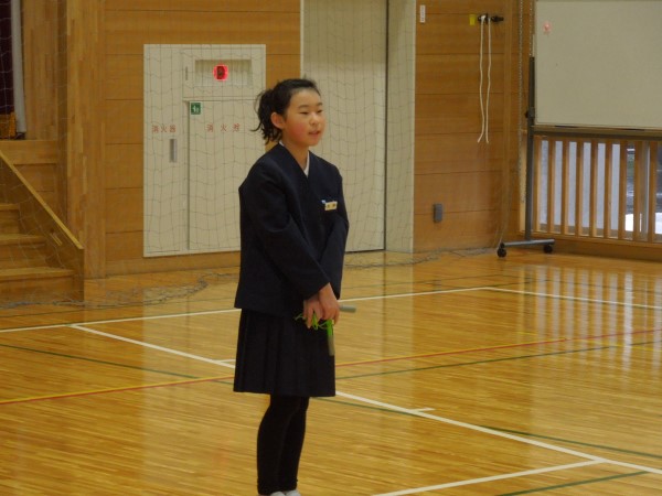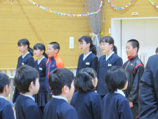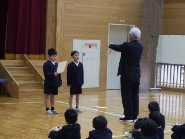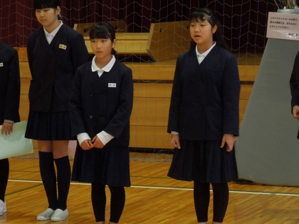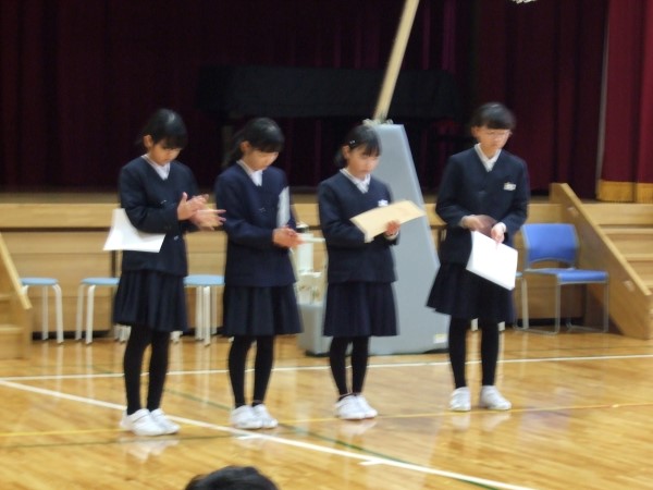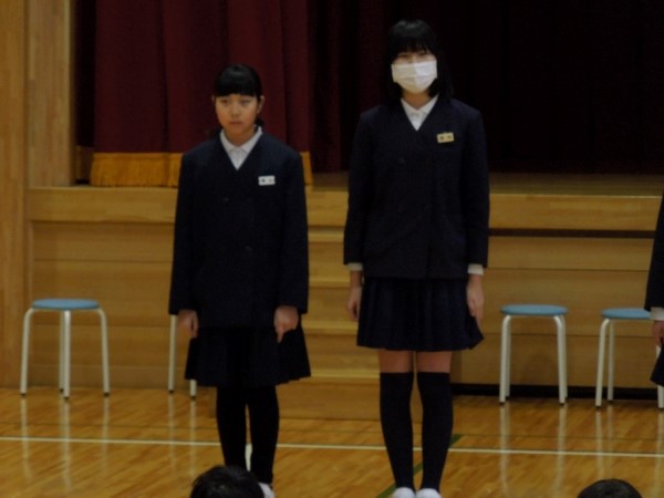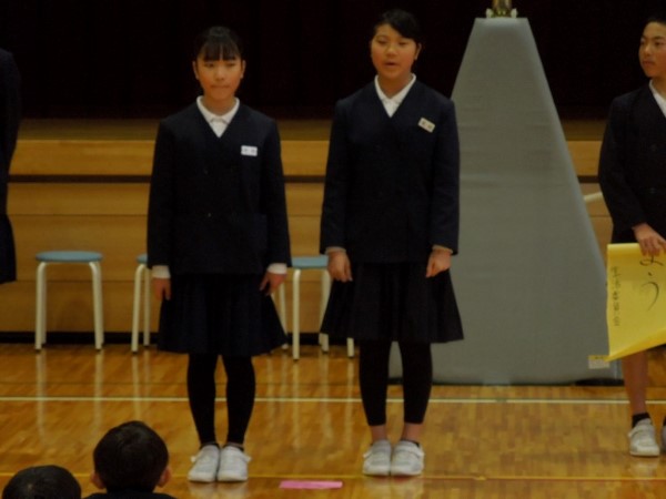 4年Yさんと5年Tさん、6年生からすでにしっかりバトンを受け取って、在校生コンビで堂々と報告をしてくれていました。頼もしい二人の姿でした。