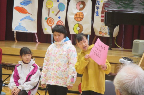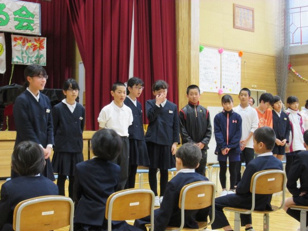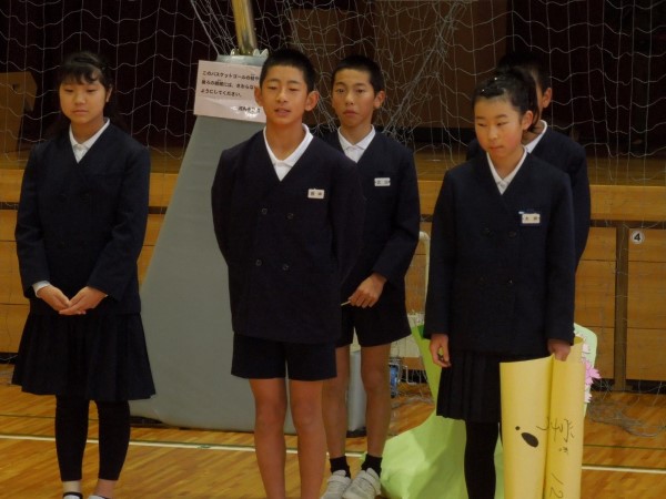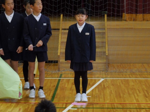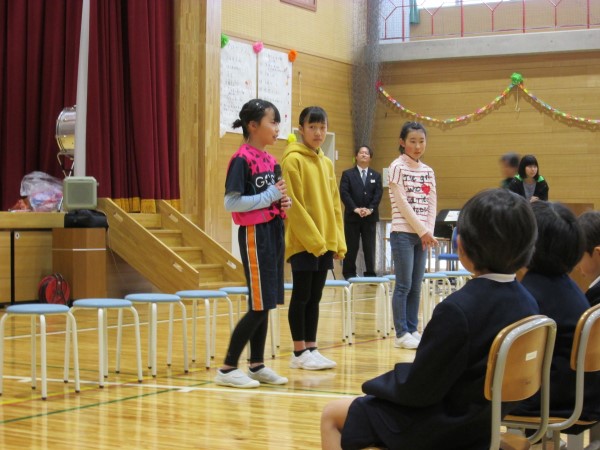 最後に、今回で6年生と過ごす児童集会が最後ということで、3人の「卒業生」たちから「在校生」たちに、集会活動についてのふりかえりと、これからの集会活動への期待のメッセージをもらいました。