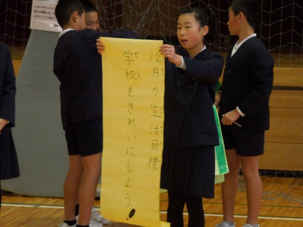 師走を迎え、学校をきれいにするための取り組みの呼びかけ、はきはきとわかりやすく伝えてくれました。