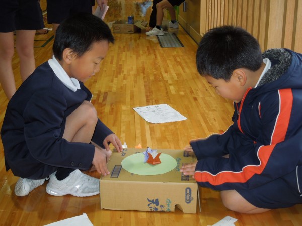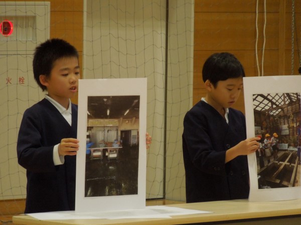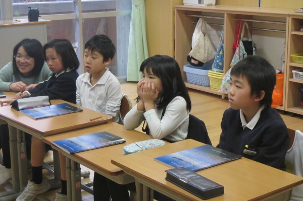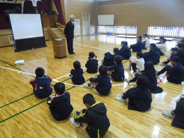 いっしょうけんめい聞いている下学年の河内っ子たち。6年生の作ってきてくれたものを感じ取っていたようです。
