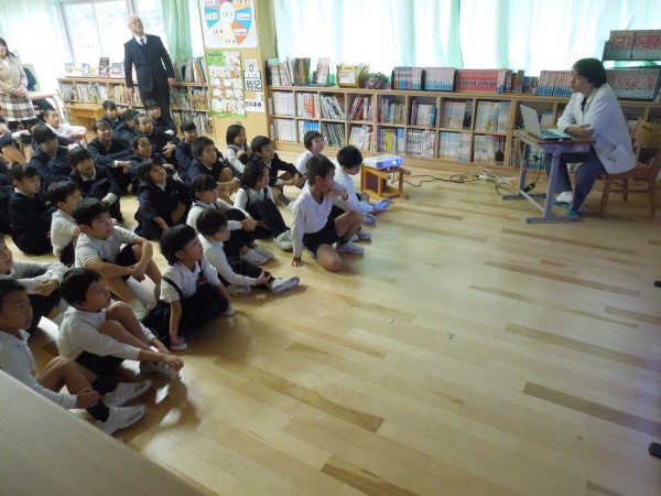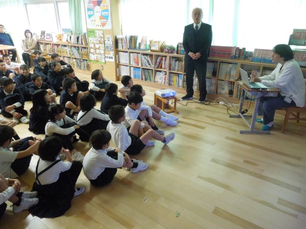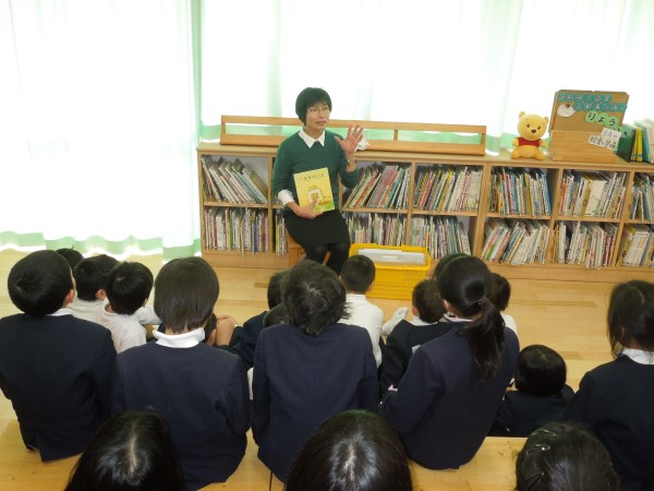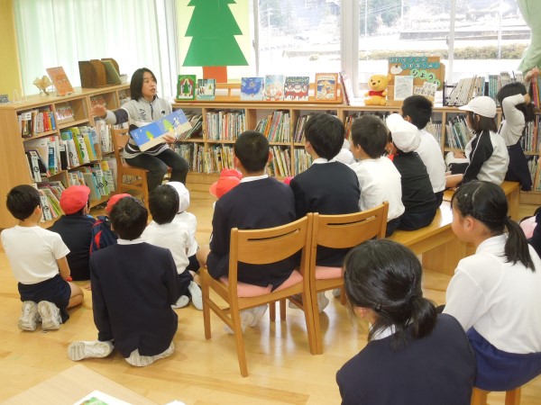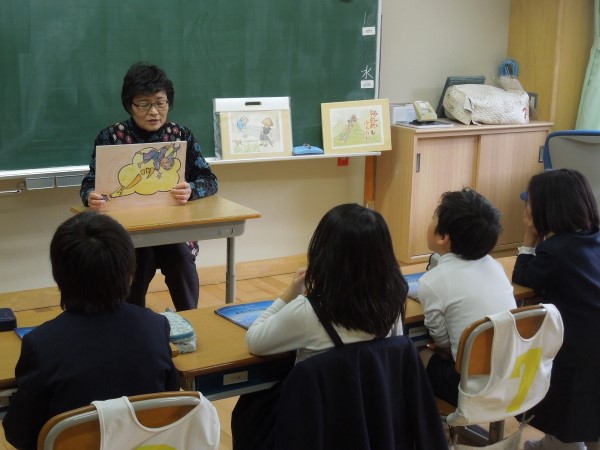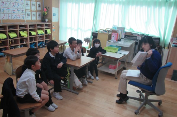 その最終日の朝読書は、先生たちが各教室に出向いて読み聞かせをする「おはなしキャラバン」が開催されました。