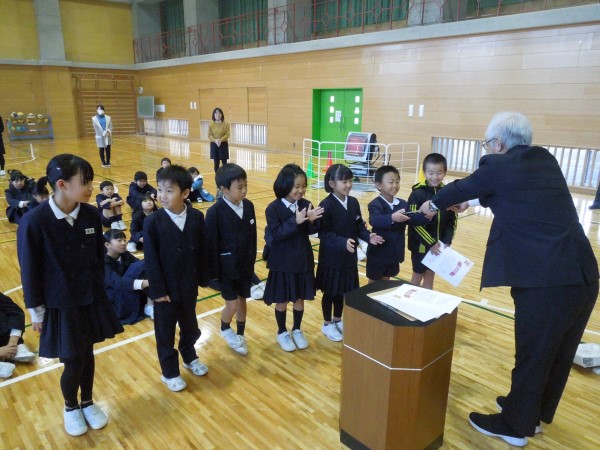 校長先生からは、「おすすめの本」読書目標達成者のみなさんの表彰式です。