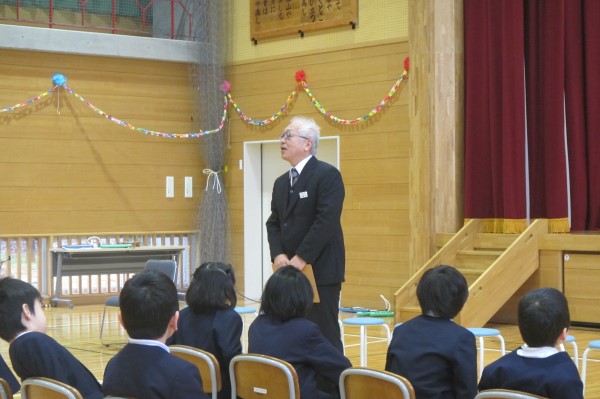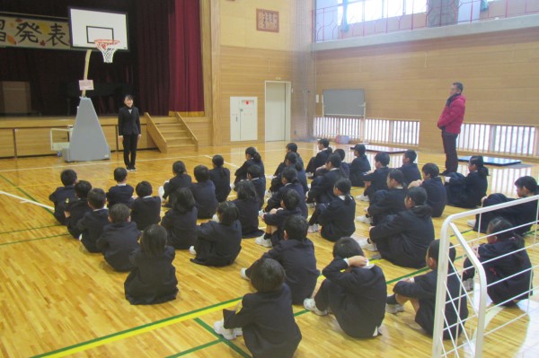 生活指導担当の宮岸先生からは、命を守ること、バス待ちのマナー、3学期の残りの生活のポイントをみんなで確認するお話でした。楽しく、みんなで力をつける、そんな学校生活のための大切なお話でした。