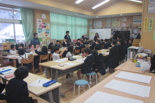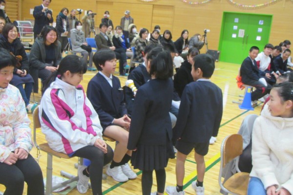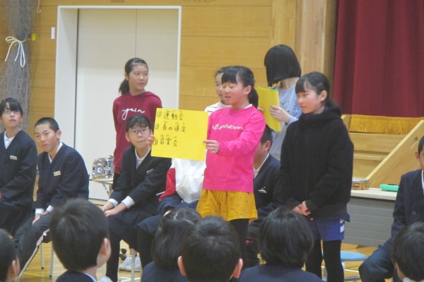 河内小学校では、全校40人の少人数を生かして、行事の最後にはかならず、感想や感謝の言葉を述べ合う「ふりかえり」の時間をとります。