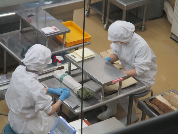 6年生に教えてもらいながら、サツマイモをていねいにラップしていきました。