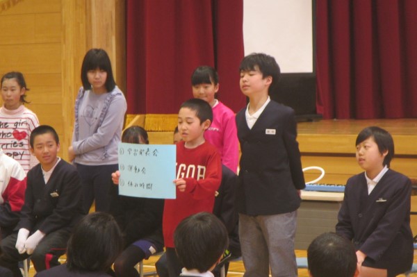そしてなかよし集会のおたのしみ、全校ゲームのコーナーです。