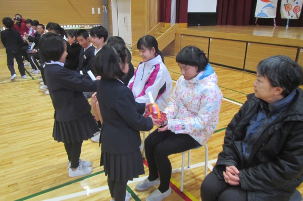 最後に、1年生から手作りプレゼントをわたしました。