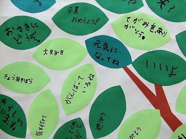 ご覧の通り、たくさんの「葉っぱ」が書き込まれて、河内っ子のすてきな「ありがとう」の言葉がたくさんの木になりました。