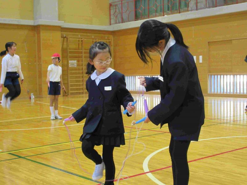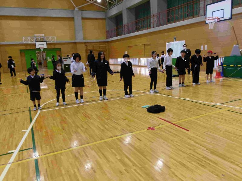 また、2人がそれぞれ縄跳びを持って並び、隣り合ったほうの柄を相手が持ち、一緒にとぶ技にもチャレンジ!声をかけ合って、3人、4人…と人数を増やす姿も見られました。寒さがふき飛んだ昼休みでした。