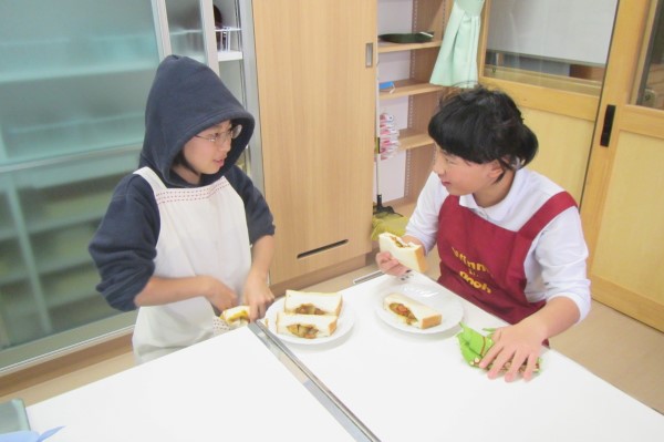 できたカレールーを、切れ目をいれたパンの中につめこんで「カレーパン」のできあがり。