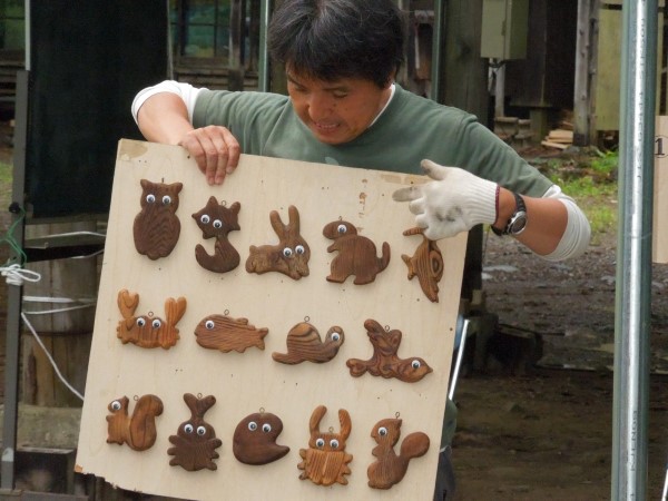 そして、先生たちにバーナーで「焦がし」を入れてもらい、ブラシで磨き上げて完成です。