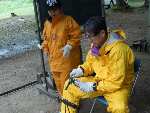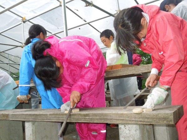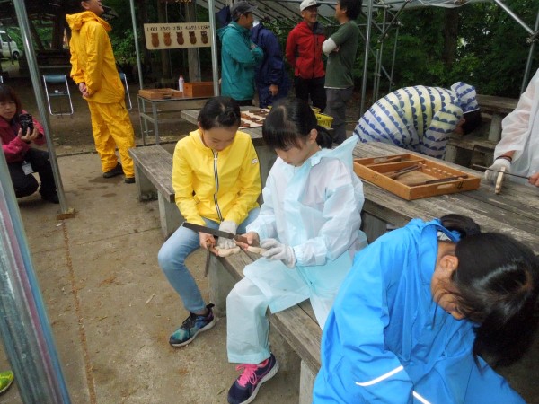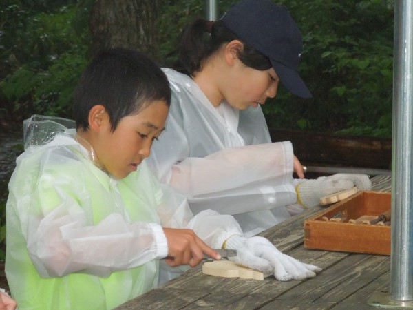 みんなテントの屋根を打つ雨音を聞きながら、一心不乱に作品作りに集中していました。