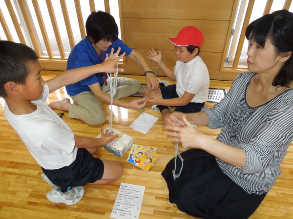 こちらでは懐かしの、あやとりにチャレンジ中。