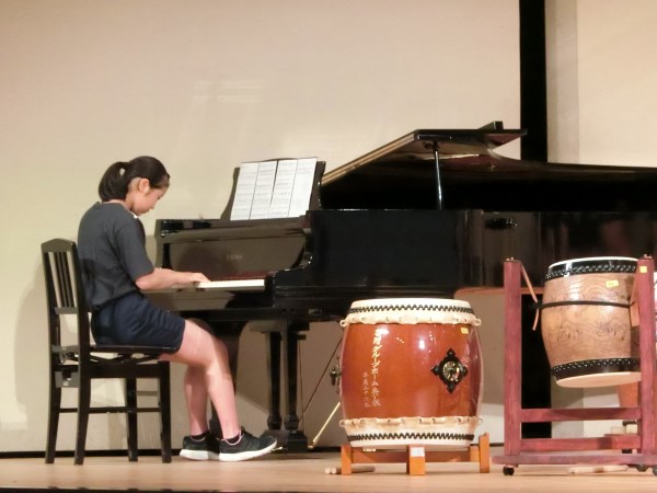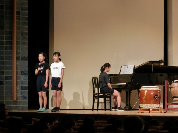 学校紹介と演目の紹介、そして合唱「ビリーブ」の伴奏は6年生が務めてくれます。