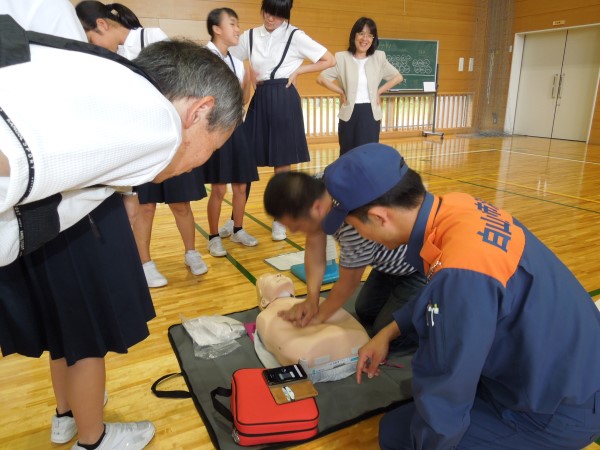左端でやり方を教えてくださっているのが救命士の高田さんです。