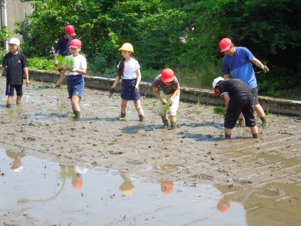 みんな楽しく、夢中で田植えに励みました。