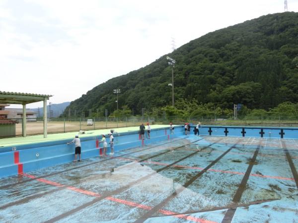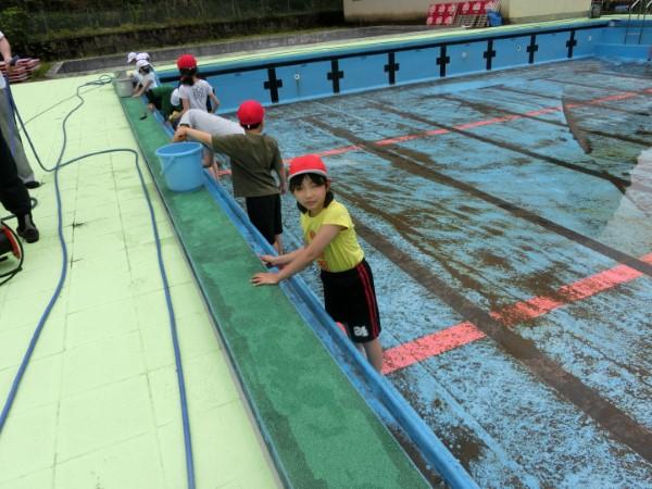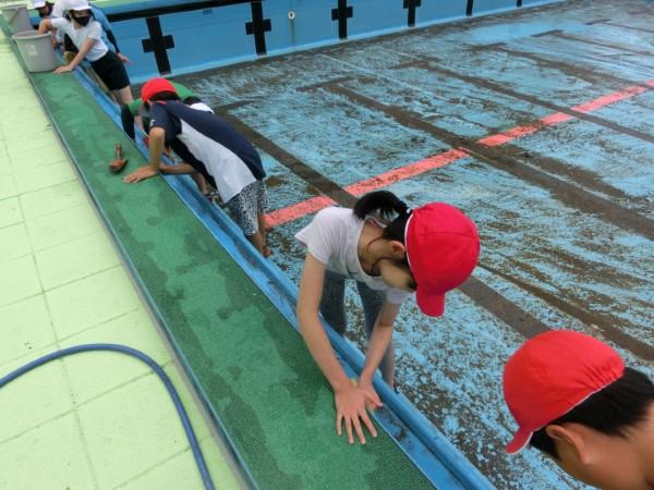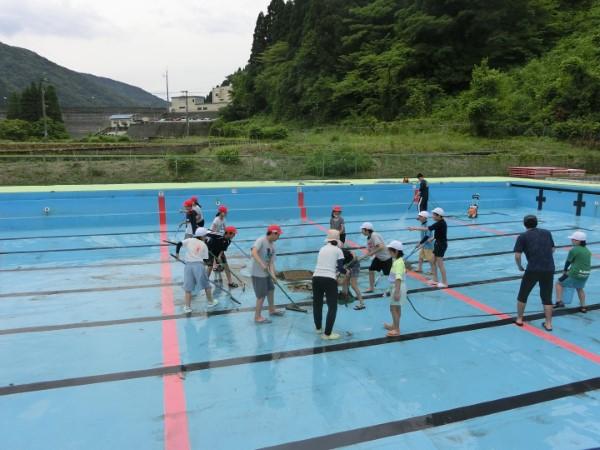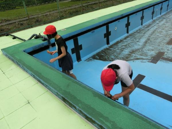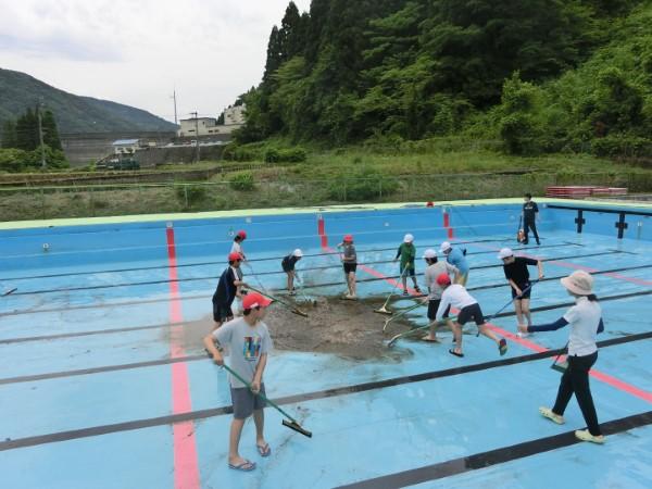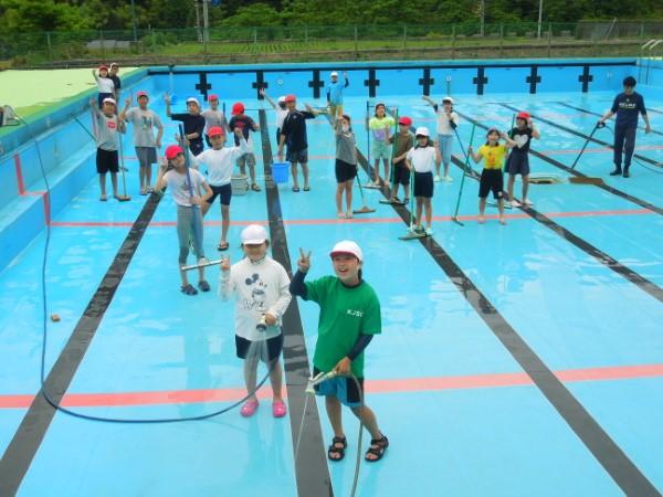 少ない人数で、大きなプールをそうじしなくてはならない河内小学校ですが、河内っ子たちの協力・大活躍で午後の2時間で作業が終わりました。すばらしいことです。本当にありがとう!