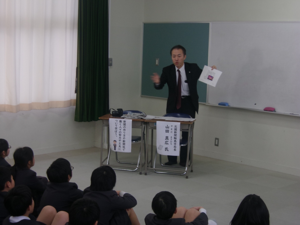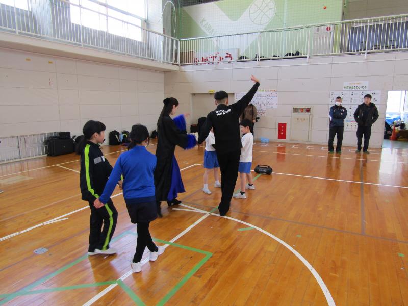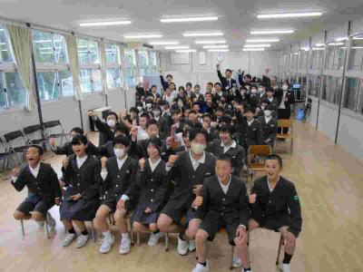 落語や曲芸の後、輪島市出身の豊田さんを中心にキャリア教育を実施しました。