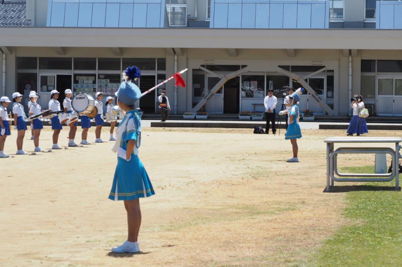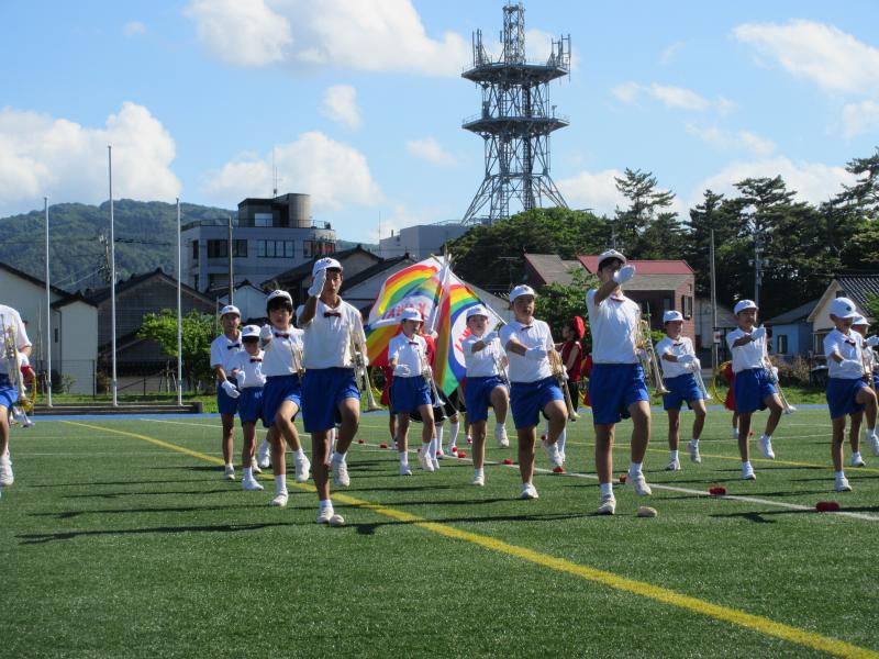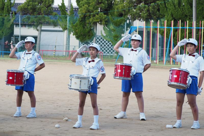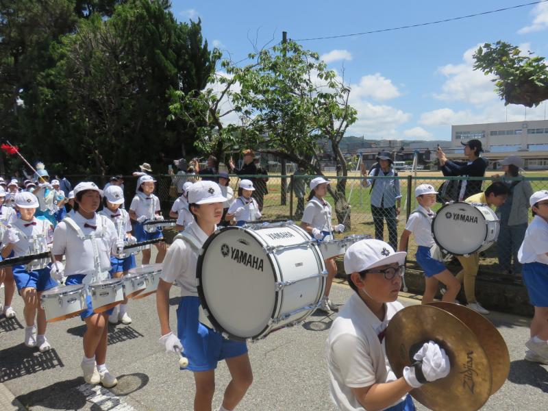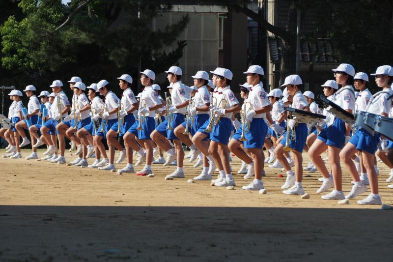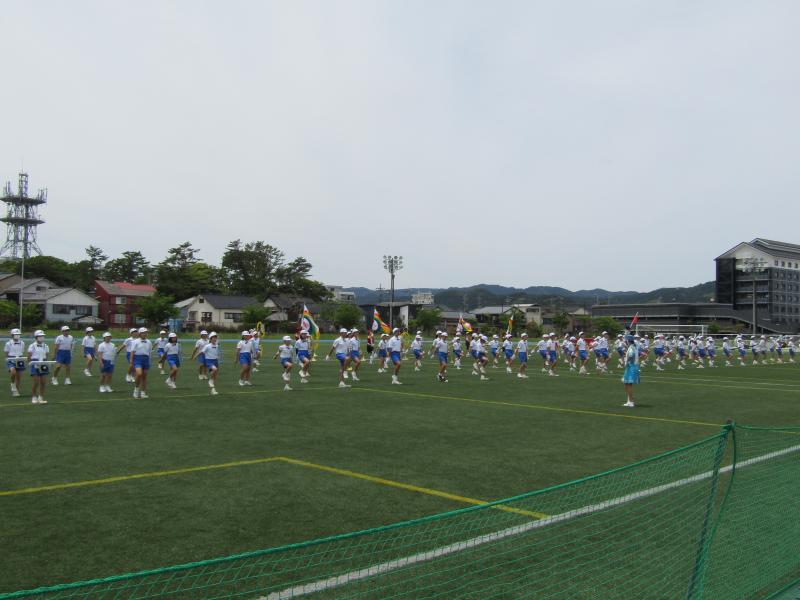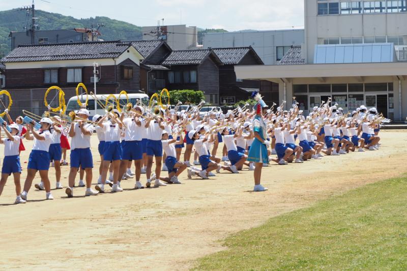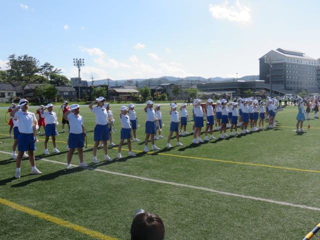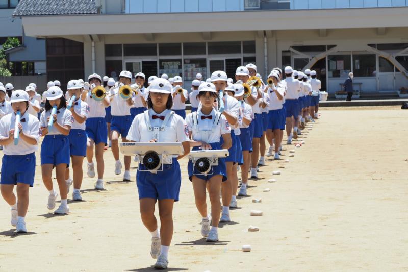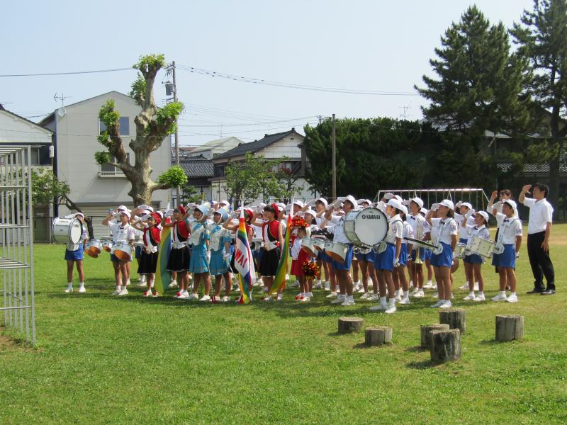 体育館で明日の1年生を向ける会に向けて金管鼓隊の練習がありました。