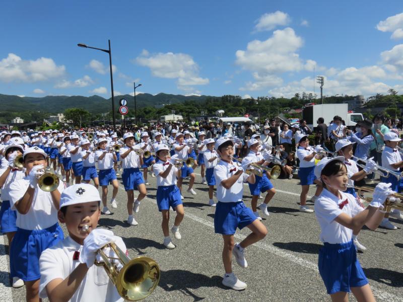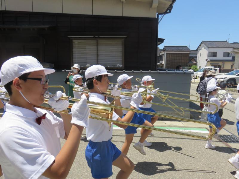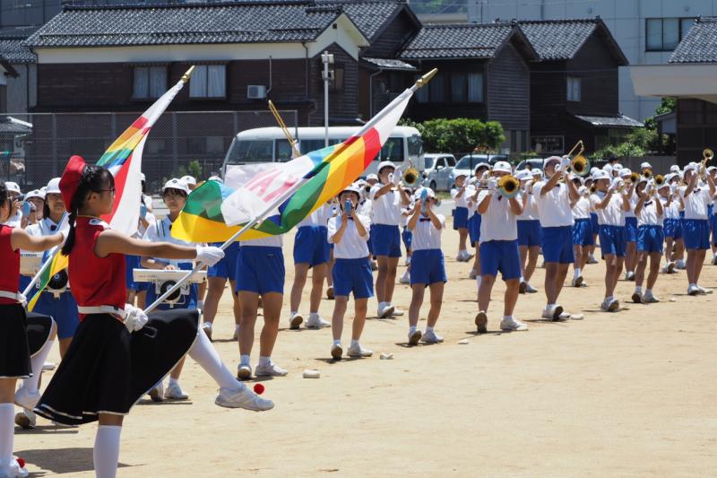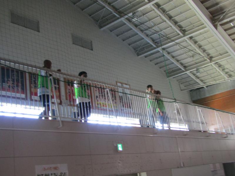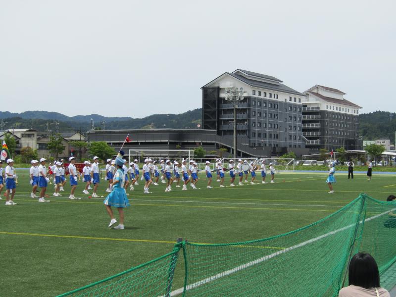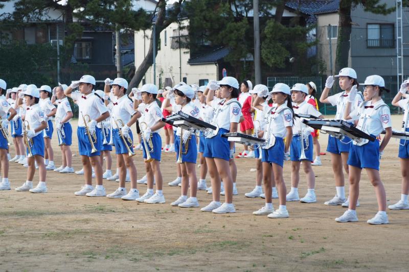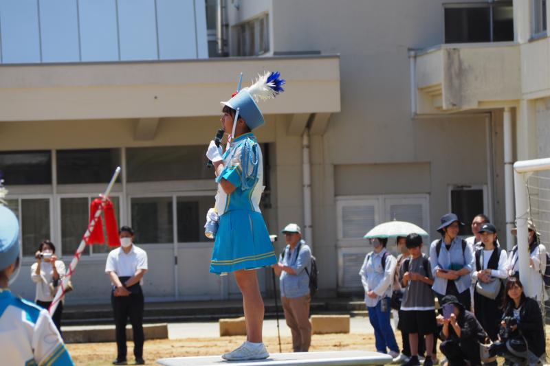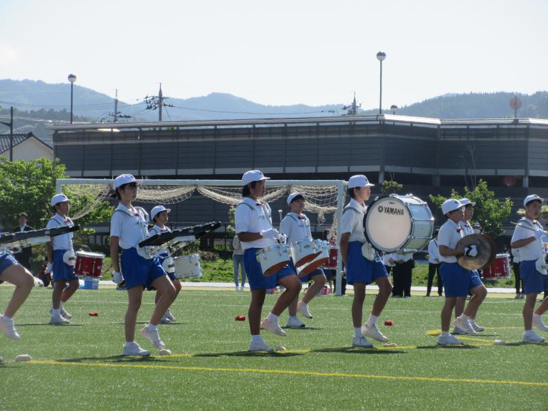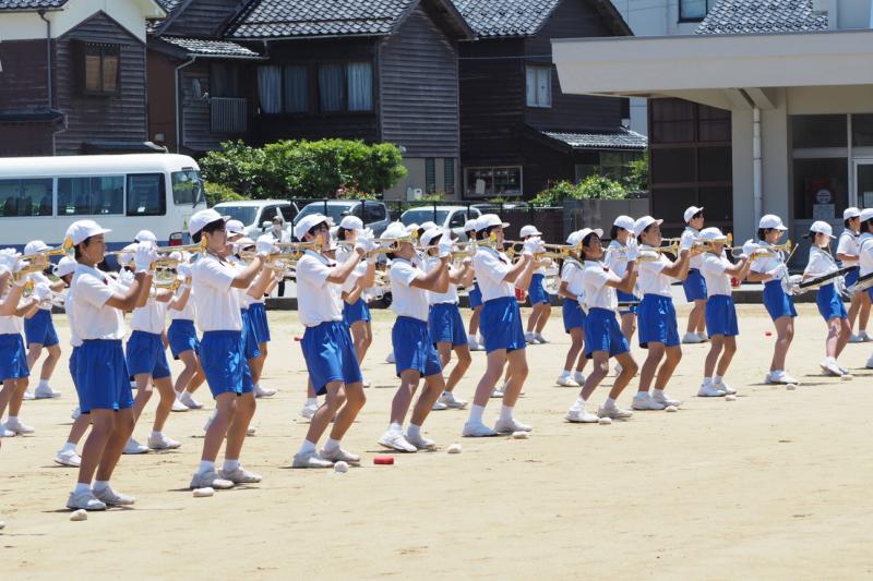 体育館で明日の1年生を向ける会に向けて金管鼓隊の練習がありました。