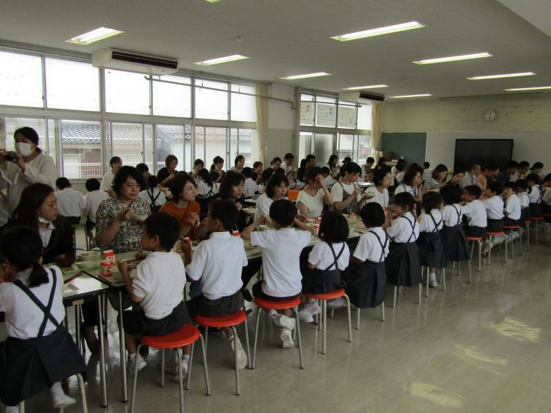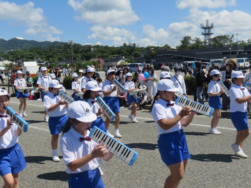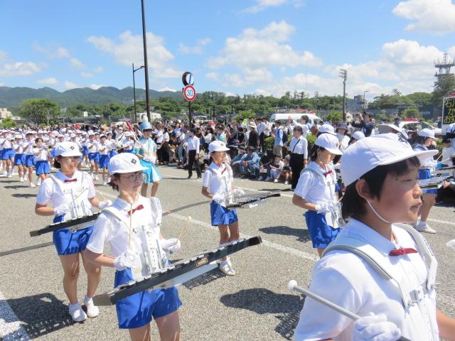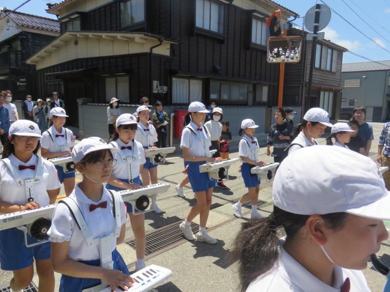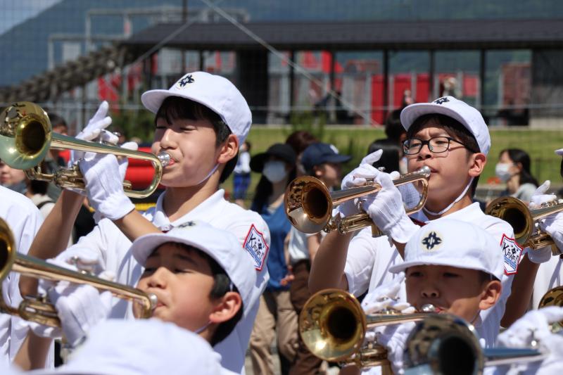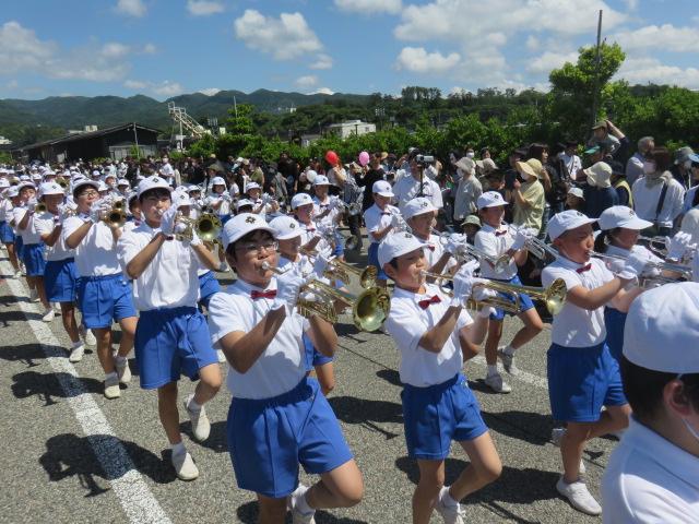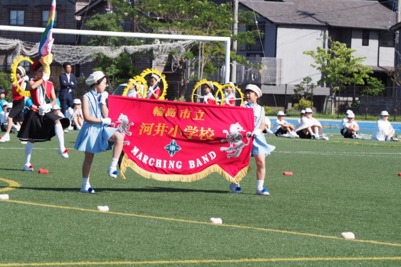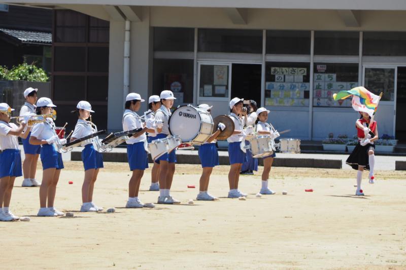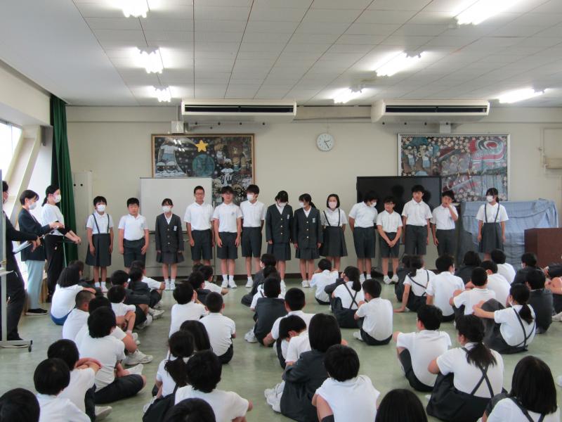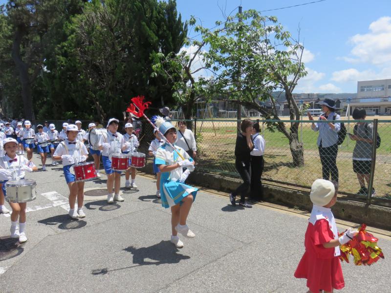 1年生が河井小金管鼓隊の演奏を初めて聞く日です。