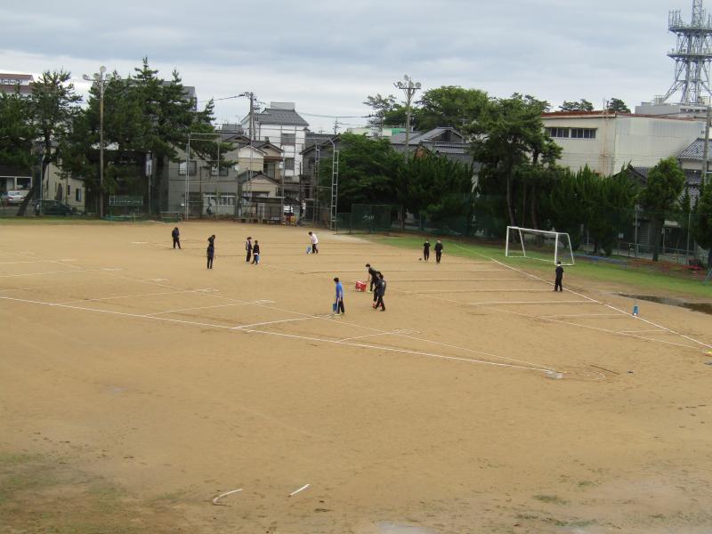 1日の放課後、若手の先生が運動会のライン引きをしてくださいました。