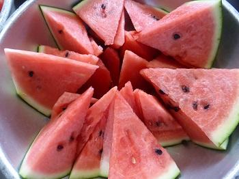 調理さんが均等に切って下さったおかげで、大きさの揃ったすいかになりました