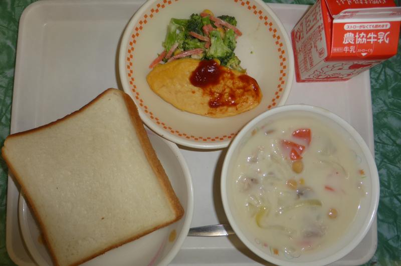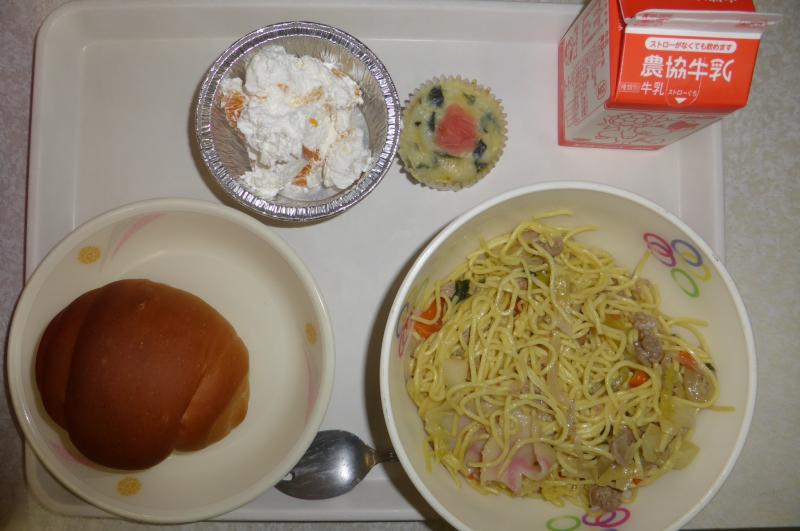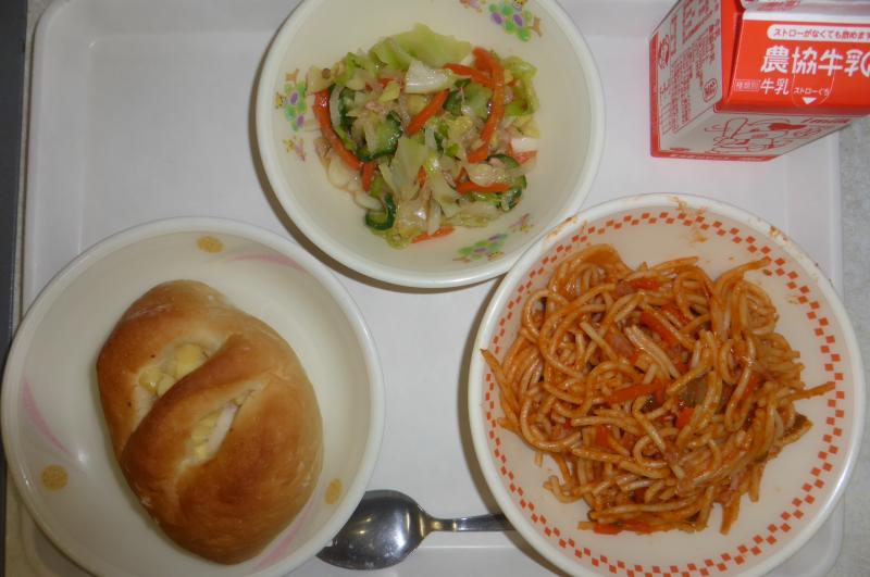*中学年の量です。今年度の給食も今日を入れて3日です。明日はチーズパン給食でナポリタンスパゲティです。