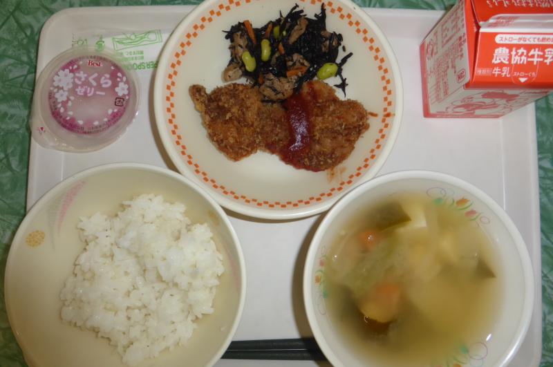 ・さくらゼリー(6年生のリクエスト献立でゼリーもあり、追加でいれました。春先どりのゼリー30gです。