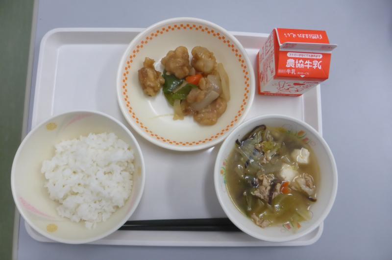 食べきれない児童もいて好き嫌いがあるようですが、地産地消の1品です。