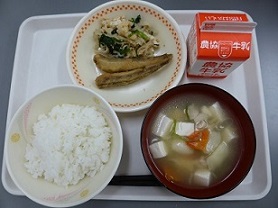 ごはん、めぎすのいしる揚げ、五目なます、すまし汁、牛乳