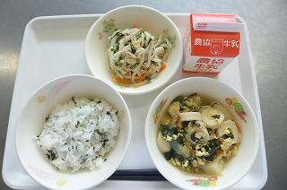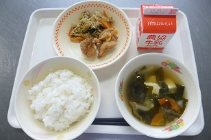 ごはん、とりのから揚げ、切干し大根、みそ汁、牛乳
