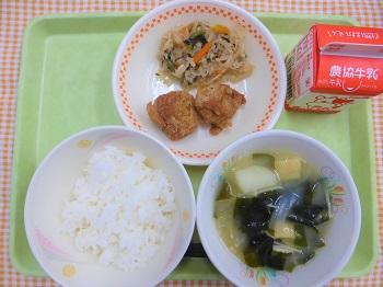 今日の給食では、ふぐに下味をつけ、石川県産米粉をつけて揚げました