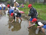 一生懸命に苗を植える子ども達。おいしいお米に育ってね。