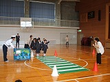 低学年は、ビデオを見た後に体育館で横断歩道の安全な渡り方の練習です。