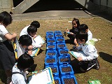一生懸命に苗を植える子ども達。おいしいお米に育ってね。