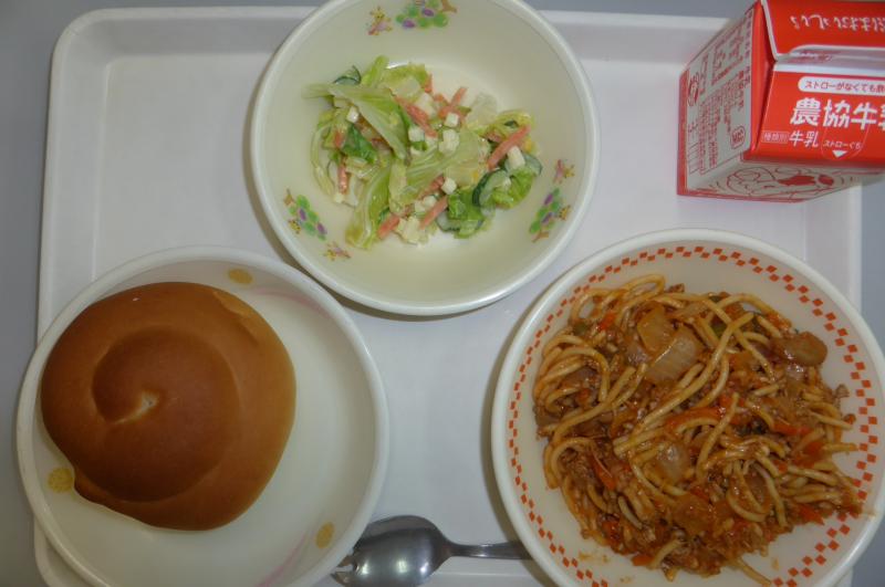 *中学年の量です。今日のミートスパゲッティは今までより野菜を沢山いれています。今まで入ることがなかった
