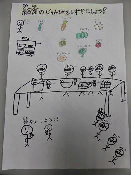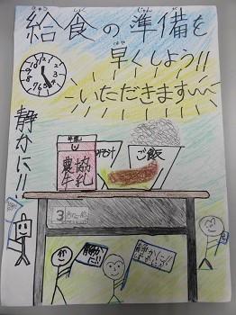 このポスターを見て、ひとりひとりが給食の準備を静かにしよう!と意識してほしいと思います