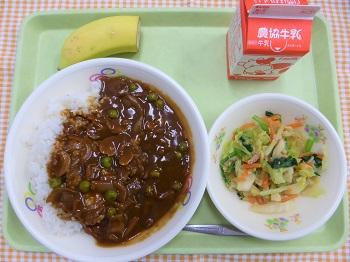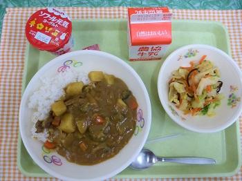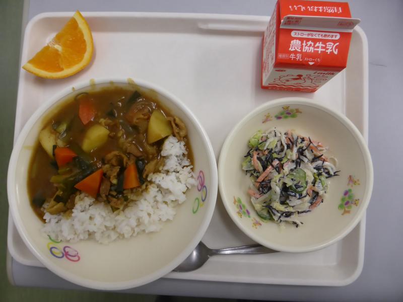 今月は今日と終業式にカレー献立になっています。今月は果物を何にするか悩んでしまい、