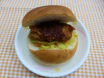 ・ハンバーグ(ケチャップは自分で、パンに切れ目をいれてハンバーガー風の献立です)
