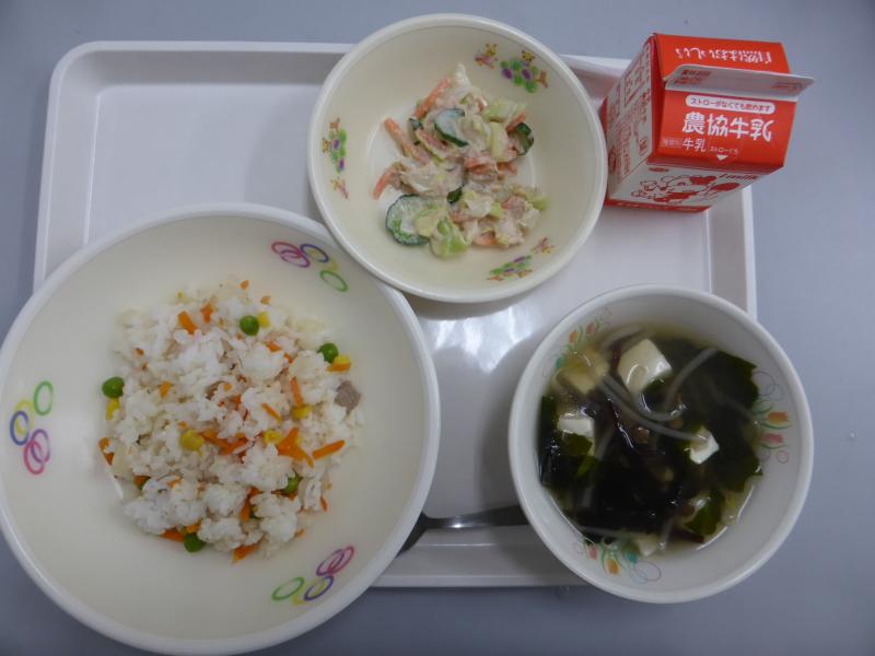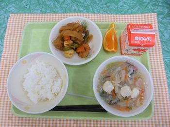児童には急遽オレンジを追加した献立になりました。しっかり食べてくれて、よかったです。