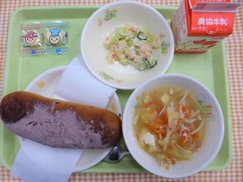 低学年の教室ではデザートのエクレアを初めて食べる児童が多かったようで、「おいしそう~!」と目を輝かせていました