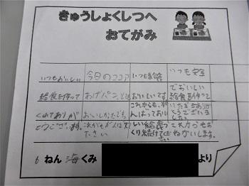 給食の時間に教室へ行くと、食器の位置の確認をしているのですが、最近はほとんどの児童が正しい位置になっています