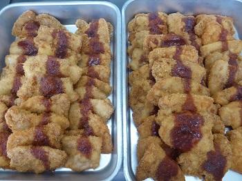 衣を調理室で付ける作業は大変ですが、とてもおいしく仕上がります
