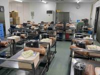 各教室に給食を運ぶ配膳車が、給食室の中に23台も並びました。