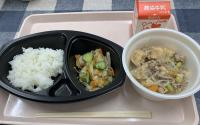 ごはん、豆腐ハンバーグ、ブロッコリー和え、せん切りスープ、牛乳